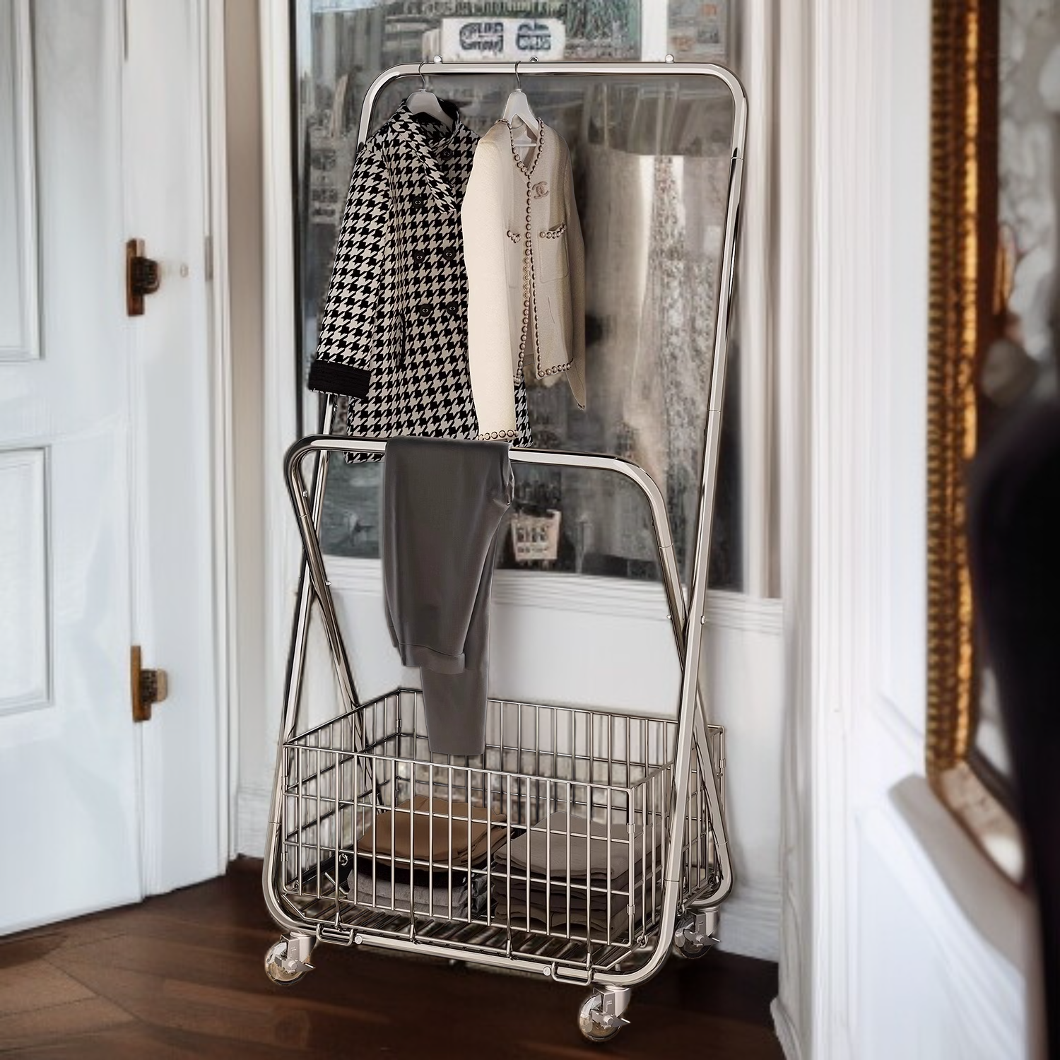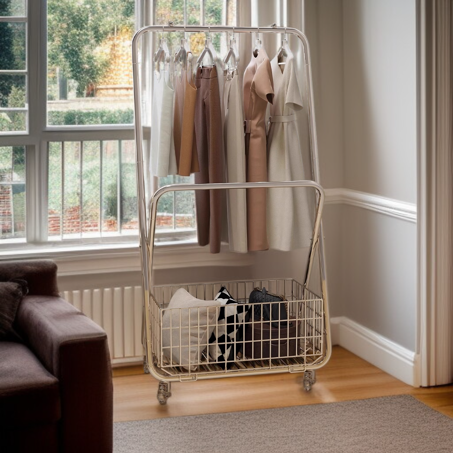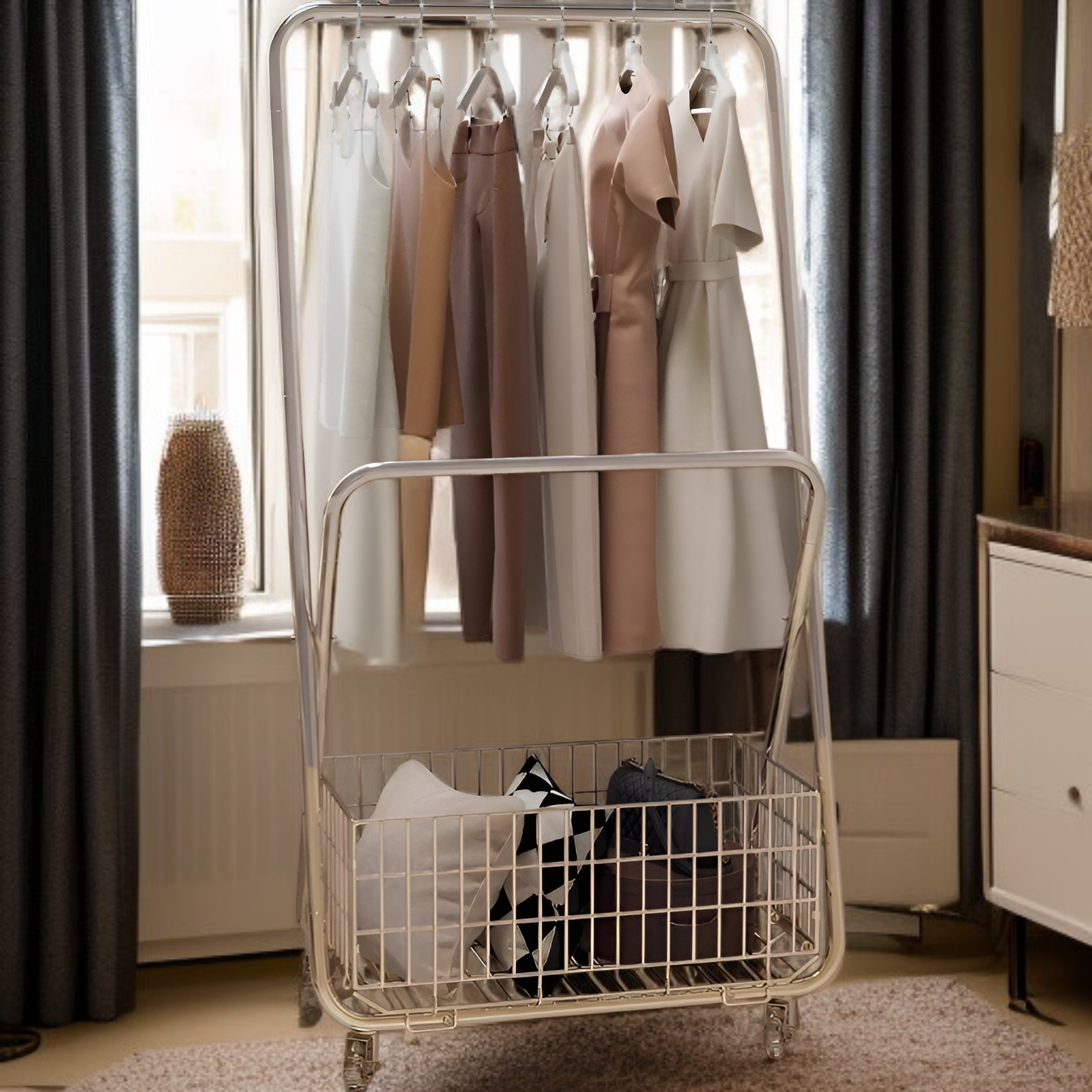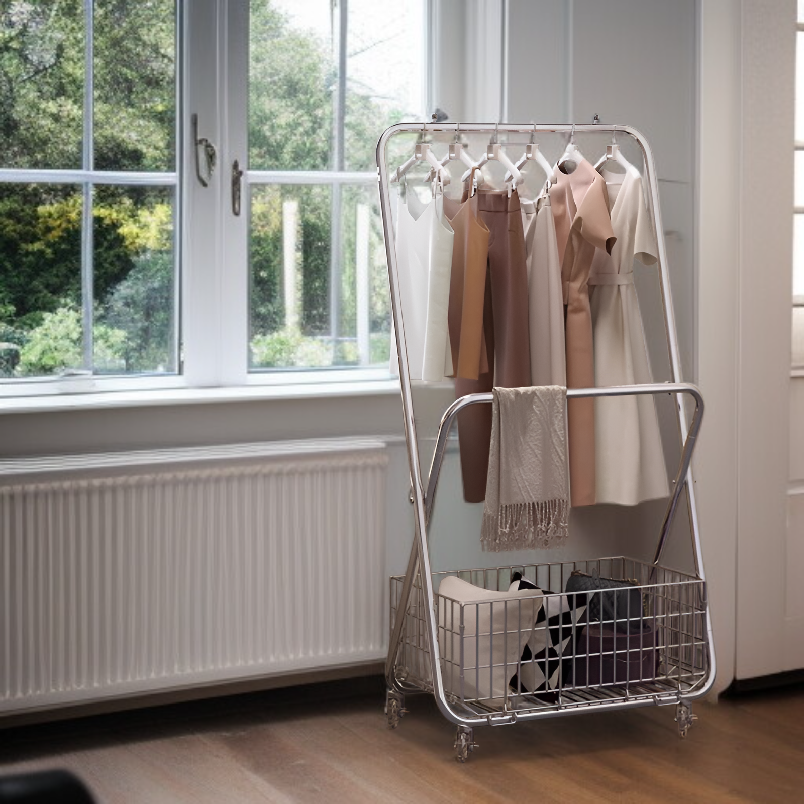 床置き洋服ラック フロアベッドルームコートラック 厚みのある金属製 キャスター付き バルコニー洋服ラック フレーム付き
