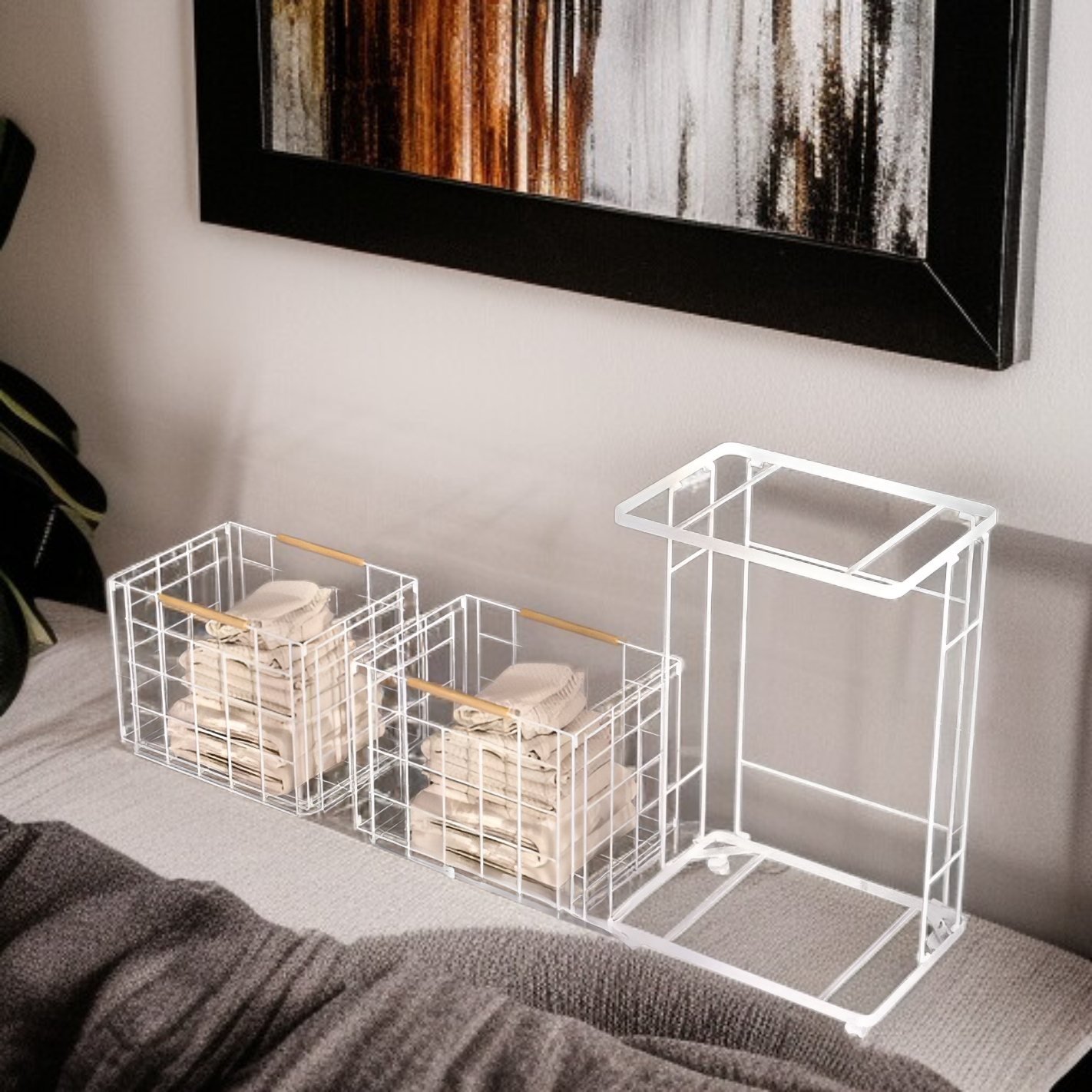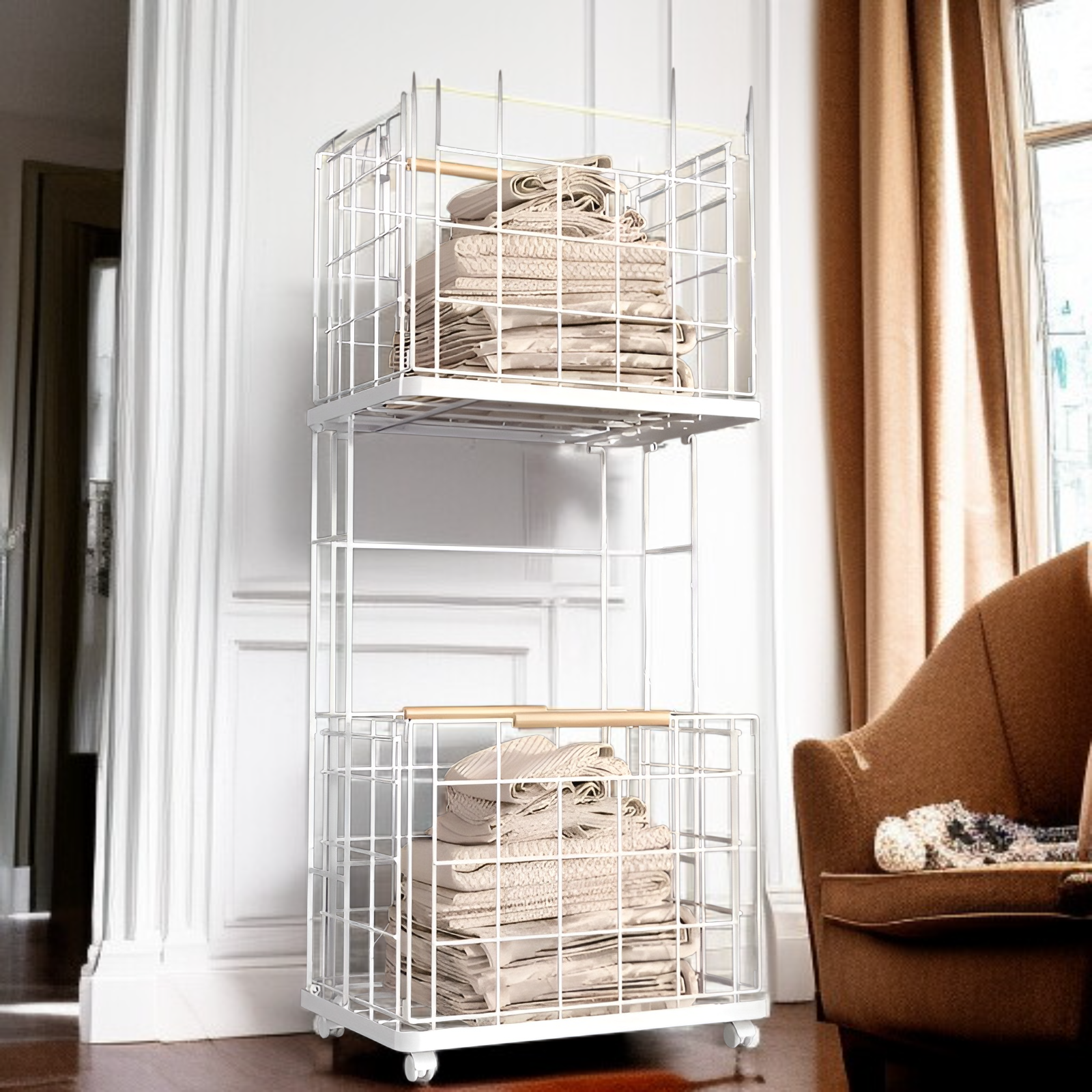取り外し可能な汚れた衣類収納バスケット 北欧風ホーム 二層汚れた衣類バスケット 家庭用ラック バスルーム 取り外し可能な汚れた衣類収納バスケット ブルー 汚れた衣類